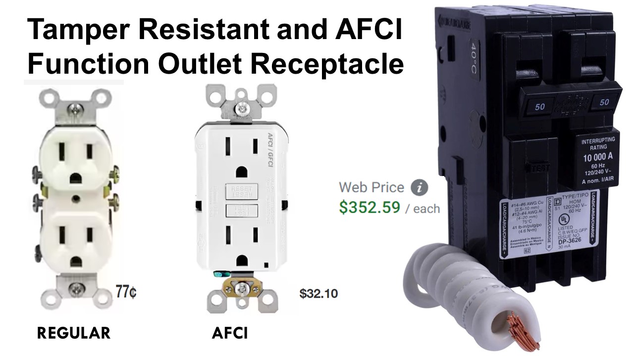 그래서 주거용 건물의 Kitchen과 Bathroom에는 Tamper GFCI를 설치해야하고 그 이외의 모든 장소에는 Tamper-Resistant and AFCI Outlet Receptacle 을 사용해야 합니다.