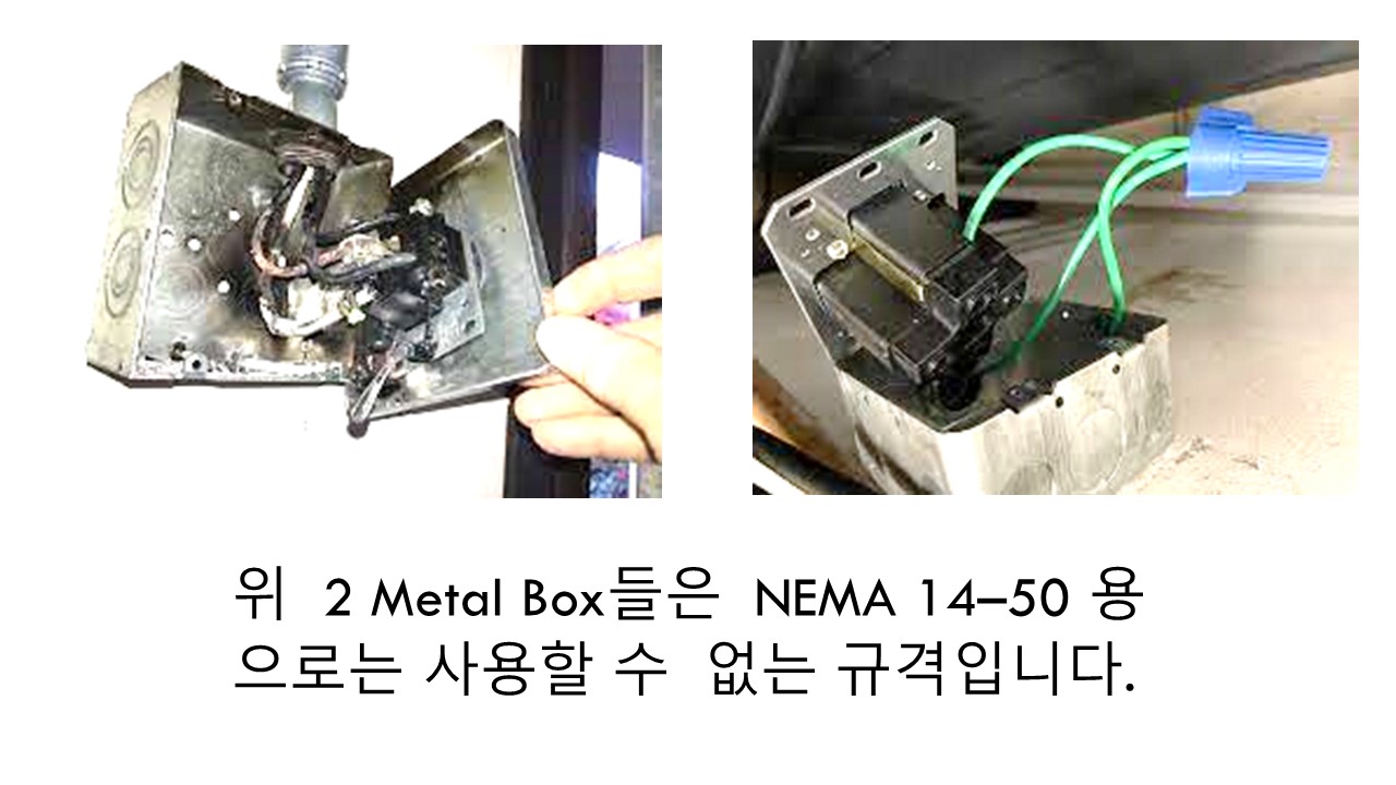 이 그림의 메탈 박스들은 NEMA14-50에는 사용할 수 없는 규격입니다