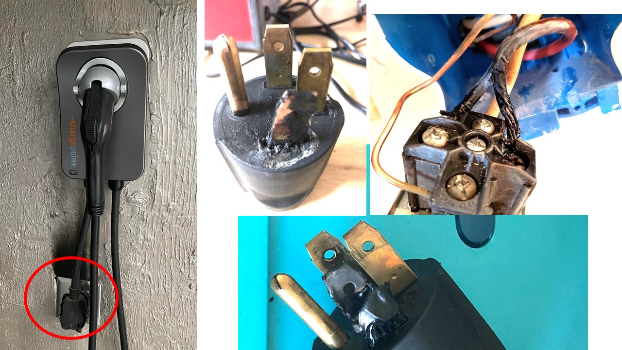 전기차 충전시 발생하는 화재는 거의 대부분 차고 벽면에 설치된 240 볼트 Outlet Receptacle과 충전기의 Plug을 결합하는 부분에서 불이 발생하여 차고가 불타고 건물로 번지며 전기차도 불태웁니다.