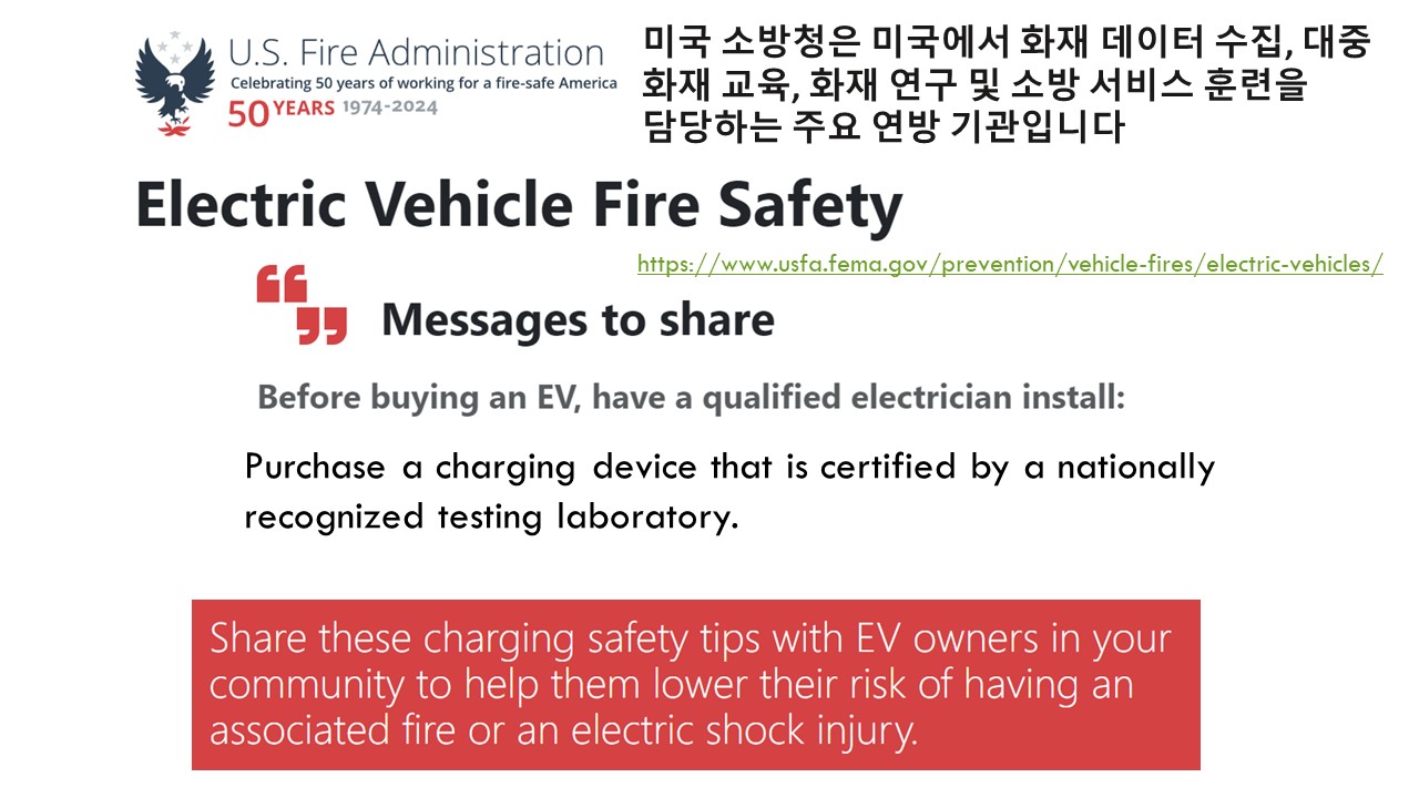 연방정부 소방청에서 전기차 관련 화재 예방을 위한 홍보를 강화하고 있습니다.