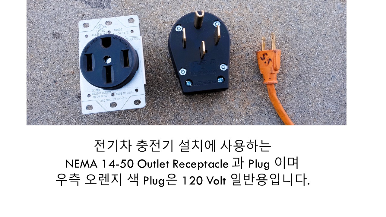 NEMA 14-50 Outlet Receptacle 은 그림에서 보는 것 처럼 보통 사용하는 Plug (3번 그림) 보다는 그 크기가 많이 다릅니다. 크기만 큰게 아니고 전기 용량도 많이 큽니다.