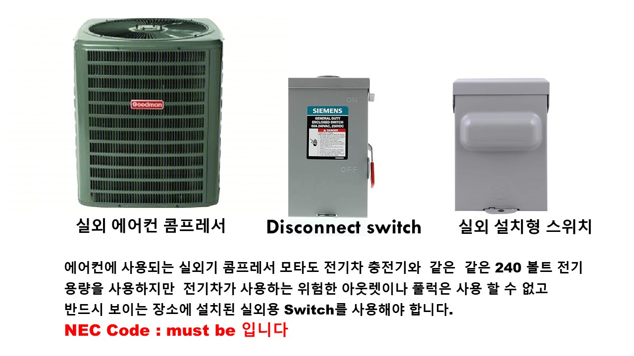그리고 전기차 충전기에 사용되는 전선들은 N.E.C. 내셔널 일렉트릭 코드에 맞추어 전선을 사용하면 안 됩니다
